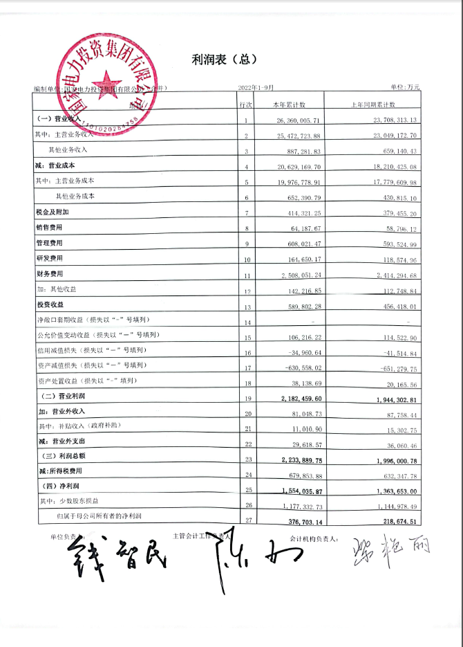 國家電投集團(tuán)2022年三季財(cái)務(wù)報表
