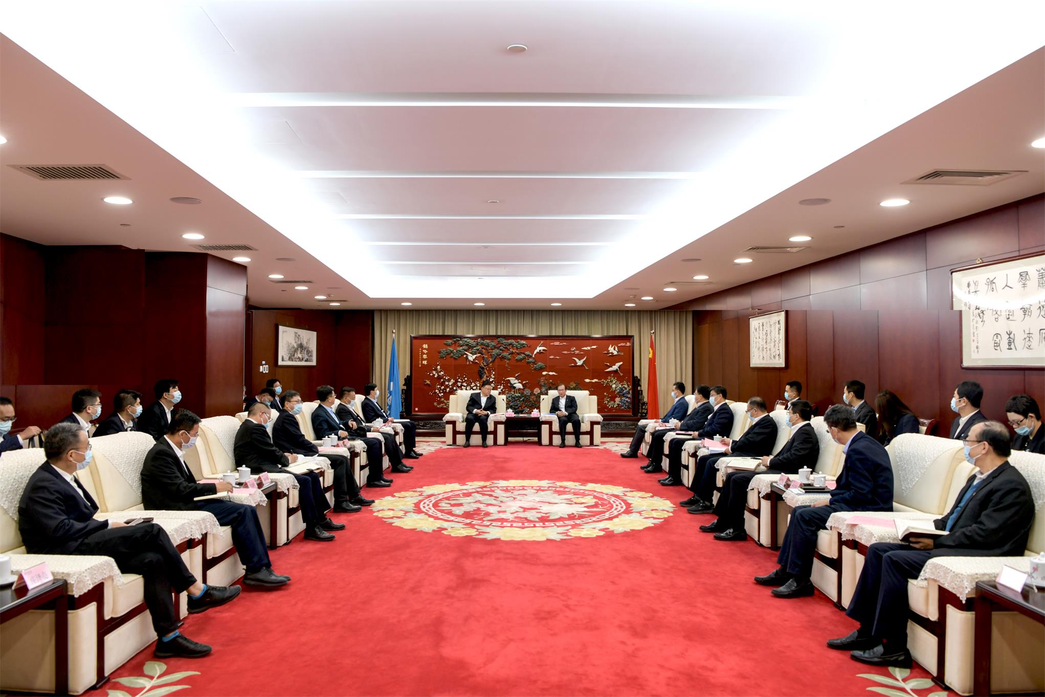 王彤宙感謝中國華電長期以來給予中交集團的支持幫助,并介紹了中交集團有關發(fā)展情況。王彤宙表示,近年來,中交集團在國家重大戰(zhàn)略領域先行示范,圍繞“三重兩大兩優(yōu)”經營策略,積極布局智能化、數字化、低碳化新產業(yè),向產業(yè)鏈高端、高科技領域加速進軍,高標準建設具有全球競爭力的科技型、管理型、質量型世界一流企業(yè)。中國華電在保障能源安全與推動綠色低碳發(fā)展等方面成果豐碩,為構建清潔低碳安全高效能源體系,實現“雙碳”目標作出了突出貢獻。當前正值全黨全國各族人民深入學習貫徹黨的二十大精神之際,中交集團愿與中國華電進一步建立更加緊密的合作機制,共同譜寫高質量發(fā)展的新篇章,攜手在新發(fā)展格局中展現央企擔當。