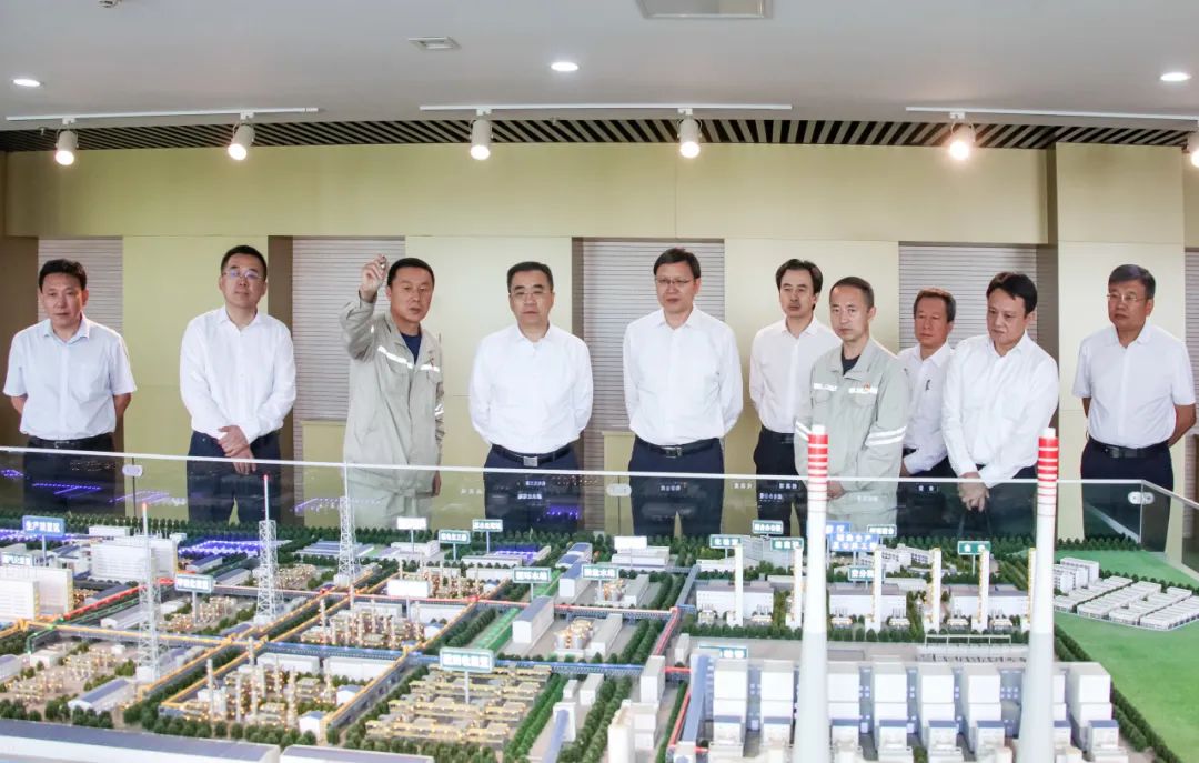 8月4日,鄒磊、張傳江在阜新市委常委、常務(wù)副市長林艾民的陪同下,深入大唐阜新煤制天然氣公司,實地考察廠區(qū),結(jié)合沙盤、展板詳細了解煤化工關(guān)鍵裝置和重點部位情況,認真聽取企業(yè)負責(zé)人關(guān)于煤化工工藝流程、裝置運行、原料及產(chǎn)品、產(chǎn)業(yè)鏈延伸和路礦一體化等工作介紹。