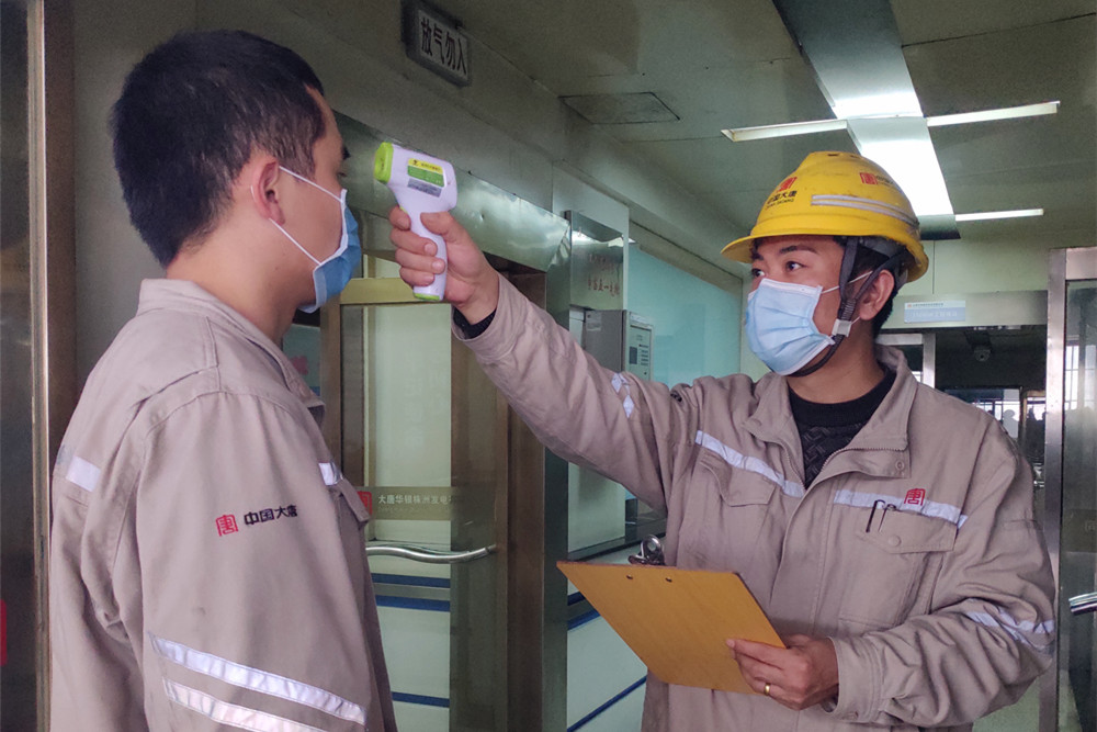 檢測體溫 方劍學(xué)是大唐華銀株洲發(fā)電公司發(fā)電部的一名集控運(yùn)行主操,每天他上班都要經(jīng)過兩次體溫測量和佩戴口罩檢查。在疫情發(fā)生的第一時間,該公司迅速落實(shí)戰(zhàn)“疫”保電工作要求,實(shí)行生產(chǎn)區(qū)崗哨、集控室準(zhǔn)入制,凡是進(jìn)入公司區(qū)域的人員必須先接受檢查,做到外防輸入、內(nèi)防傳播,確保職工生命安全和機(jī)組發(fā)電安全。