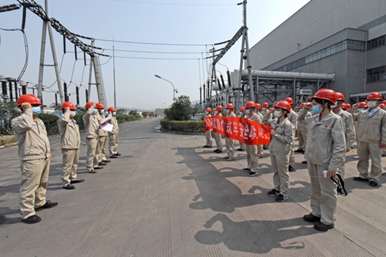 中國電力網(wǎng)訊 “我是大唐安徽公司一員,我鄭重宣誓:時刻牢記‘生命至上,安全第一’,遵守‘三大紀律’‘八項禁令’,踐行‘兩人成行、三人成列’,守紀律、講規(guī)矩、知敬畏、不違章……”6月1日上午9時整,按照大唐安徽公司統(tǒng)一部署,大唐淮北發(fā)電廠全體干部職工在企業(yè)內(nèi)部和外部市場各項目部同步開展“安全生產(chǎn)月”宣誓活動。該廠廠長帶領宣誓并作動員講話。