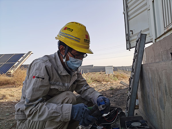 6月是光伏發(fā)電的高峰期,但環(huán)境溫度高、地域風(fēng)沙大,導(dǎo)致現(xiàn)場逆變器室積塵嚴(yán)重,設(shè)備散熱效果不佳,部分散熱風(fēng)扇受當(dāng)?shù)仫L(fēng)沙影響,無法正常工作,逆變器室因溫升限負(fù)荷報(bào)警,一定程度上制約了光伏板正常發(fā)電。“難題”擺在眼前,卻難不倒這群大漠電站的年輕人,為不影響峰值輻照的發(fā)電量,他們搶在太陽升起前便開始動身,備好備件、持好工具,快速趕到現(xiàn)場,一頓“快查、快拆、快換”靈活操作,2小時(shí)完成了40多個(gè)堵塞風(fēng)扇的更換工作。到太陽高照的時(shí)候,他們再次赴現(xiàn)地檢查和處理低效發(fā)電組串,解決處理限制發(fā)電量的突發(fā)異常。一次次地現(xiàn)場排查、問題處理促進(jìn)了發(fā)電量穩(wěn)步提升。