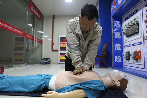 此次培訓(xùn)通過(guò)理論與實(shí)踐相結(jié)合的方式有效開(kāi)展。過(guò)程中,該公司工作人員就如何掌握心肺復(fù)蘇的操作要點(diǎn)及注意事項(xiàng)進(jìn)行了細(xì)致講解,并通過(guò)對(duì)“模擬人”實(shí)際心肺復(fù)蘇搶救操作進(jìn)行了演示,環(huán)境安全風(fēng)險(xiǎn)評(píng)估、判斷患者意識(shí)是否清醒、檢查呼吸脈搏情況、求助現(xiàn)場(chǎng)人員撥打120、正確調(diào)整體位、檢查清除口腔異物、快速打開(kāi)氣道、胸外按壓與人工呼吸交替實(shí)施等一系列操作有條不紊的進(jìn)行。參加培訓(xùn)的每位職工積極踴躍參與,工作人員針對(duì)不正確的操作耐心細(xì)致的指導(dǎo)糾正,保障學(xué)員掌握要點(diǎn)、操作流程規(guī)范,施救過(guò)程得當(dāng)。