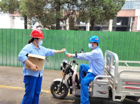 圖為,6月21日,立夏,該廠工會人員在廠區(qū)變電路設(shè)立“送清涼流動驛站”,工會人員拉著小車,抱著紙箱,一路迎接剛剛收工、走出生產(chǎn)現(xiàn)場的職工,為他們送上夏日關(guān)懷。僅一天時間送上礦泉水200瓶,冰棍260根,職工們接過冷飲,連聲道謝,臉上洋溢著幸福的笑容。