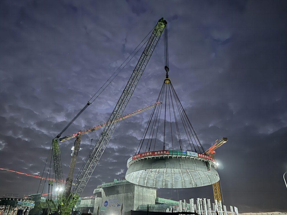 11月3日,中核集團(tuán)宣布海南多用途模塊式小型堆科技示范工程“玲龍一號”鋼制安全殼頂封頭順利吊裝就位,標(biāo)志著全球首個開工建造的模塊式小型示范堆的關(guān)鍵結(jié)構(gòu)封頂,全面進(jìn)入內(nèi)部安裝高峰期。這次吊裝完成了鋼制安全殼形成整體的最后一步,為已經(jīng)先期引入的反應(yīng)堆核心模塊、堆內(nèi)構(gòu)件、穩(wěn)壓器等重要設(shè)備提供了更加完整、可靠的保護(hù)屏障。