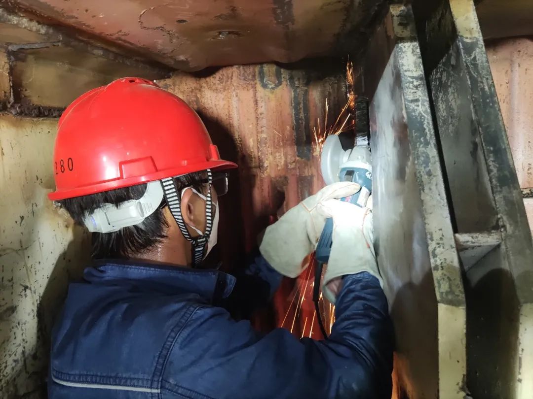 迎峰度夏期間,陜投集團(tuán)趙石畔煤電檢修人員采取各種措施保證設(shè)備健康穩(wěn)定運(yùn)行,加強(qiáng)對主、輔機(jī)設(shè)備的運(yùn)行調(diào)整、檢修維護(hù),對重點(diǎn)防汛地段、部位進(jìn)行專項檢查。特別是出現(xiàn)緊急情況下的搶修工作,往往是輪番上陣,人歇工作不停。圖中,點(diǎn)檢郭生磊在鍋爐房消除設(shè)備膨脹受限缺陷,他手持角磨機(jī)一干就是半個多小時,面對噪音、高溫、火星飛濺等因素他堅持作業(yè)。當(dāng)缺陷消除時,他的衣服早已濕透,但臉上卻露出了笑容。(李磊)