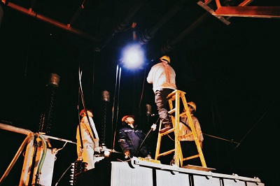除夕前夕,正逢山間陰雨天氣,沒(méi)有環(huán)境就創(chuàng)造環(huán)境,場(chǎng)站人員克服困難,當(dāng)天搭建遮蓋變壓器的檢修工棚就位,當(dāng)晚完成熱油循環(huán)提高器身溫度,防止變壓器器身受潮。