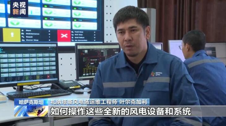 總臺(tái)記者 張譽(yù)耀:這里就是札納塔斯,哈薩克斯坦最大的風(fēng)力發(fā)電場之一,像我身后這樣一座風(fēng)能發(fā)電機(jī)能滿足當(dāng)?shù)丶s4000戶家庭的用電需求,而我身后一共有40座這樣的風(fēng)能發(fā)電機(jī),也就是說能夠滿足當(dāng)?shù)?6萬戶家庭的用電需求。正是這一座座轉(zhuǎn)動(dòng)的風(fēng)能發(fā)電機(jī),點(diǎn)亮了札納塔斯這座小城的日常生活。