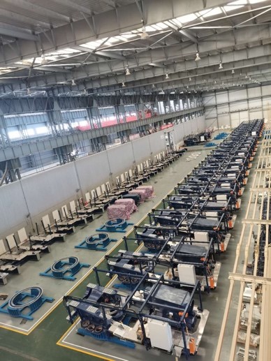 在大規(guī)模生產(chǎn)工作中,有效拓寬生產(chǎn)空間、采用精細(xì)化車間定置管理將極大提升生產(chǎn)效率。生產(chǎn)團(tuán)隊(duì)根據(jù)物資到貨情況及生產(chǎn)進(jìn)程,合理規(guī)劃空間布局,提高空間利用率的同時(shí)兼顧后續(xù)工序便利性。充分利用外場地及庫房空間,巧思布置,使得大批量存放半成品機(jī)組得以實(shí)現(xiàn)。整齊劃一的機(jī)組,形成了華銳風(fēng)電一道最美的風(fēng)景線。