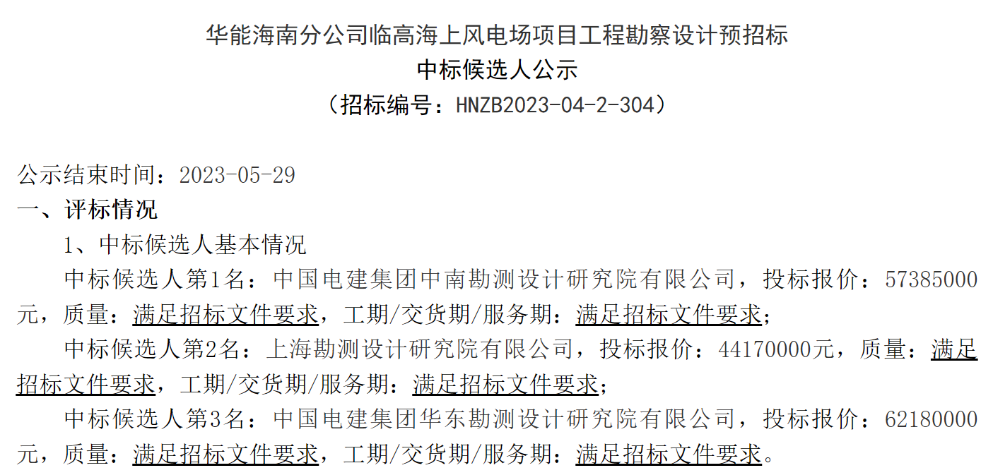 公告顯示,第一中標(biāo)候選人:中國電建集團(tuán)中南勘測設(shè)計研究院有限公司,投標(biāo)報價:57385000元。第二中標(biāo)候選人:上??睖y設(shè)計研究院有限公司,投標(biāo)報價:44170000元。第三中標(biāo)候選人:中國電建集團(tuán)華東勘測設(shè)計研究院有限公司,投標(biāo)報價:62180000元。