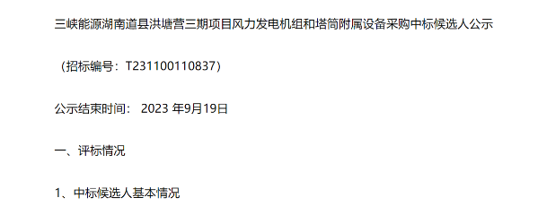 公告顯示,第一中標(biāo)候選人:浙江運達風(fēng)電股份有限公司,投標(biāo)報價:130,815,000.00元。