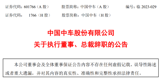 公告披露,2023年9月12日,中國中車董事會收到執(zhí)行董事、總裁樓齊良先生的辭職報告。樓齊良先生因工作調整原因辭去公司執(zhí)行董事、總裁、董事會戰(zhàn)略委員會委員、提名委員會委員職務。同時, 辭去《香港聯(lián)合交易所有限公司證券上市規(guī)則》第3.05條項下的公司授權代表職務。辭職后,樓齊良先生不在公司及控股子公司擔任任何職務。