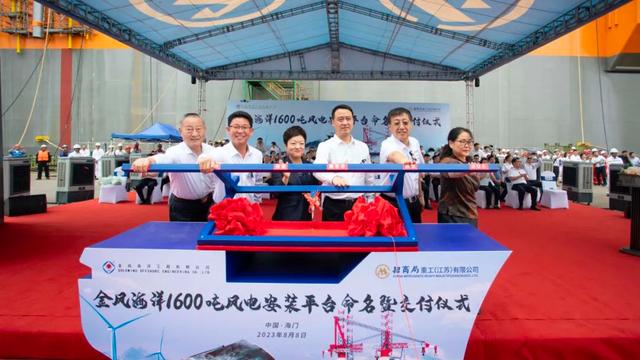 8月8日,新一代深遠(yuǎn)海1600噸風(fēng)電安裝平臺(tái)“中天31”命名暨交付儀式在江蘇南通舉行。南通市委副書記、代市長張彤,陽江市委副書記、市長余金富,招商局工業(yè)集團(tuán)黨委副書記、副總經(jīng)理吳四川,金風(fēng)科技集團(tuán)董事長武鋼,中天科技集團(tuán)董事長薛濟(jì)萍,以及三峽集團(tuán)、國家電投集團(tuán)、中廣核新能源公司等客戶代表出席儀式。