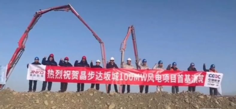 近日,晶步達坂城風電場項目首臺風機首臺風機基礎澆筑完成。
