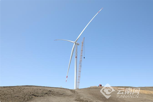 首臺風(fēng)機完成吊裝。大唐滇中新能源事業(yè)部供圖