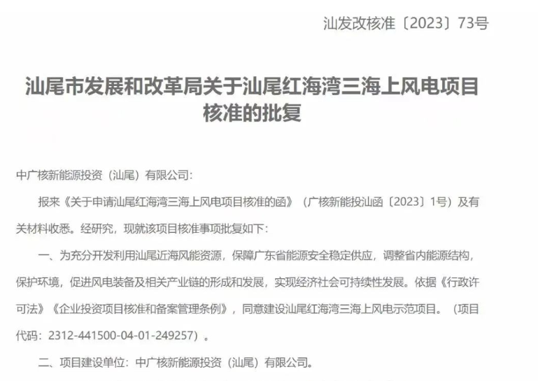 《批復(fù)》顯示,汕尾紅海灣五海上風(fēng)電項(xiàng)目建設(shè)單位為華潤(rùn)風(fēng)電(汕尾)有限公司。項(xiàng)目位于汕尾紅海灣經(jīng)濟(jì)開發(fā)區(qū)南側(cè)海域,場(chǎng)址中心離岸距離30km,水深30-40m,總規(guī)劃容量為500MW,擬安裝28臺(tái)單機(jī)容量18MW級(jí)的風(fēng)力發(fā)電機(jī)組。該項(xiàng)目靜態(tài)總投資為480966萬(wàn)元(不含送出海纜、海上升壓站、陸上集控中心等送出工程),動(dòng)態(tài)總投資為489755萬(wàn)元。