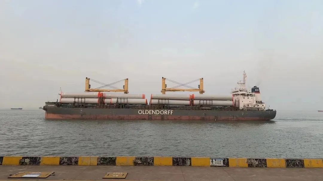 本批次發(fā)運(yùn)的15套、75段塔筒,由國際知名的散雜貨遠(yuǎn)洋運(yùn)輸公司“OLDENDORF”船公司承運(yùn),將歷時(shí)近一個(gè)月直接運(yùn)抵澳大利亞,交付至GE公司。該批次15套風(fēng)電機(jī)組投運(yùn)后,每年可以提供約5億度的清潔電力,滿足當(dāng)?shù)丶s10萬戶家庭1年的用電量。