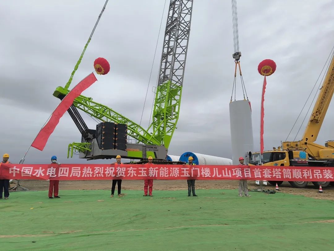 東玉新能源玉門樓兒山項目首套塔筒順利吊裝