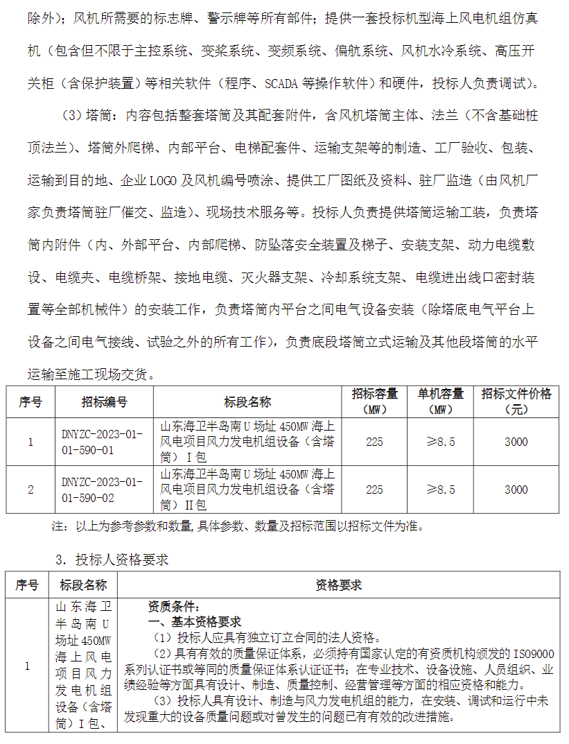 國家電投450MW海上風(fēng)電項目機組采購招標(biāo),單機要求≥8.5MW