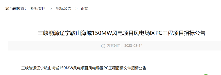 三峽能源遼寧鞍山海城150MW風(fēng)電項(xiàng)目: