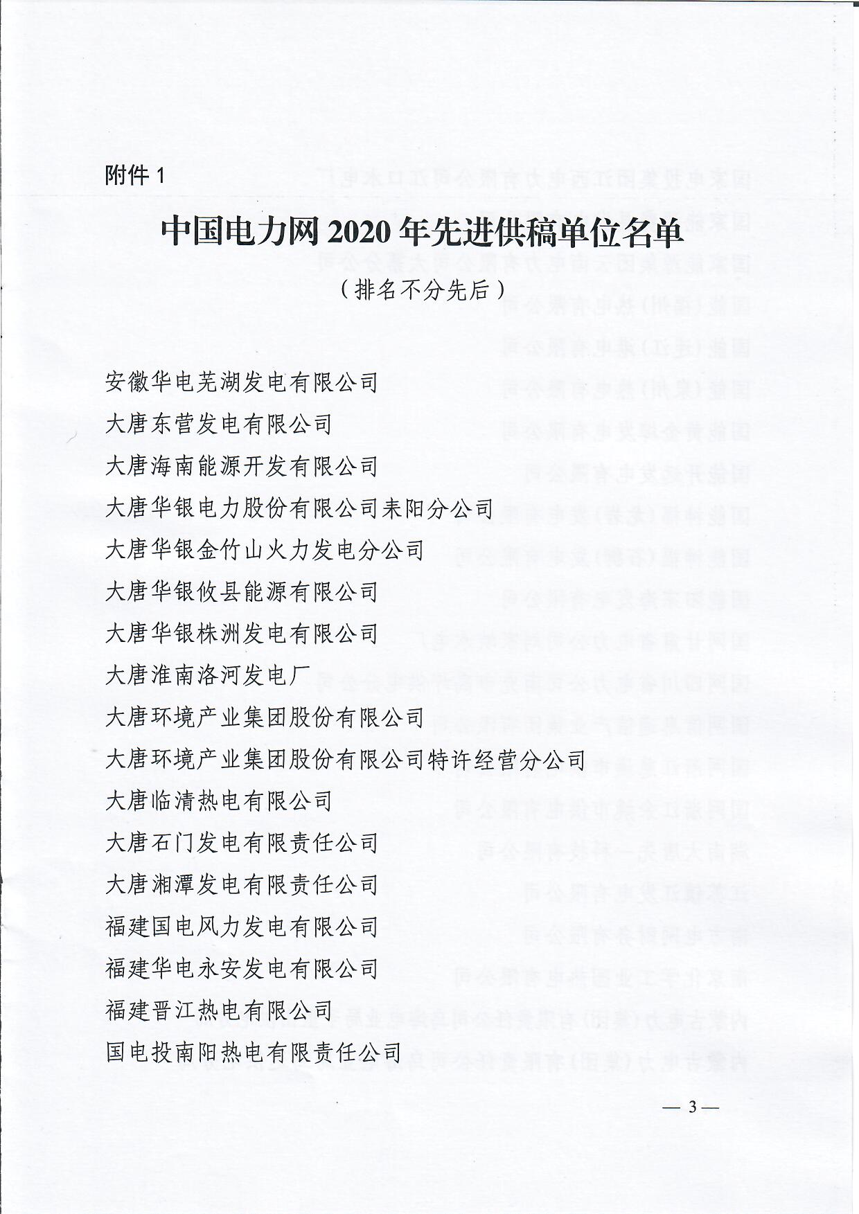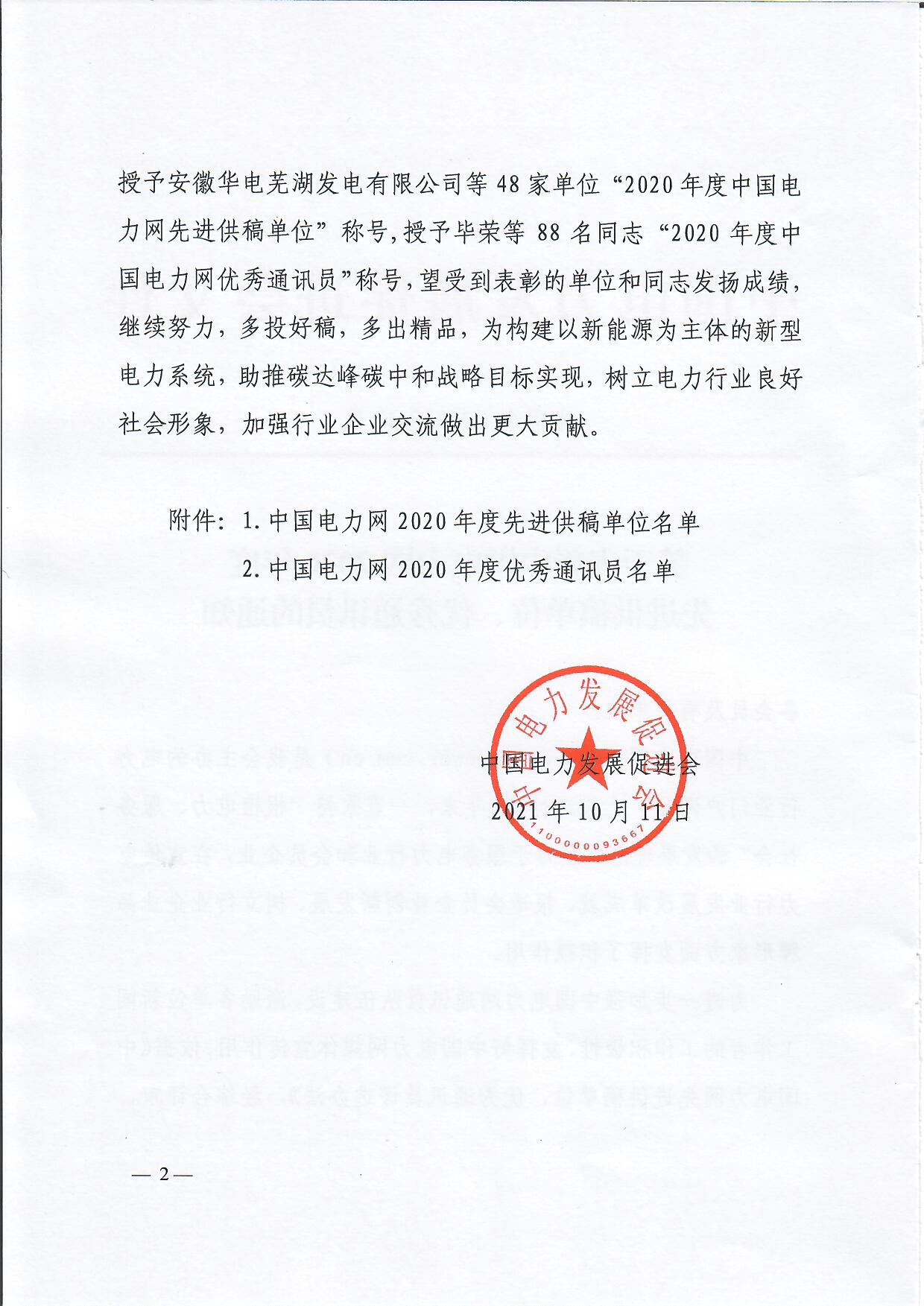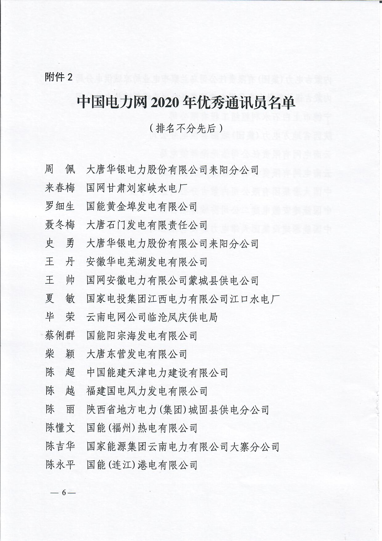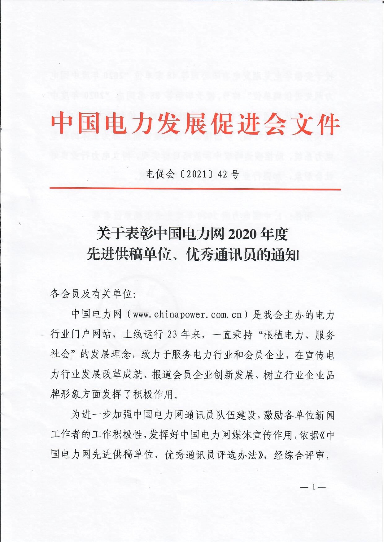 關(guān)于表彰中國電力網(wǎng)2020年度先進(jìn)供稿單位、優(yōu)秀通訊員的通知