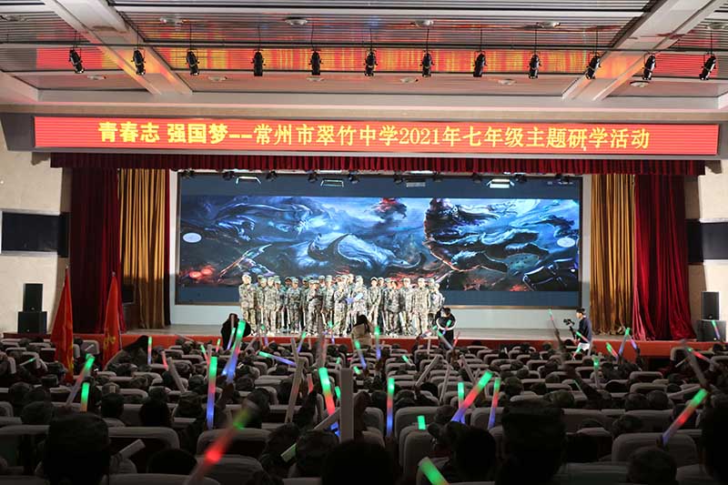 整個活動期間,全體七年級學(xué)生嚴格按照軍營生活制度作息,在教官和領(lǐng)隊的指導(dǎo)下,大家按時起床出操,按時洗漱就寢,對軍營標(biāo)準(zhǔn)化、制度化的生活有了更加深入的理解。此外,除了一絲不茍的軍營生活,七年級學(xué)生也體會到了豐富多彩的軍營文化。11月26日晚,在主辦方安排下,翠竹中學(xué)全體師生在文體活動中心禮堂上演了一場別開生面的軍營晚會,各個班級的學(xué)生紛紛表演了精心準(zhǔn)備的節(jié)目,有學(xué)生集體合唱《追光者》,有個人吉他彈唱《踏山河》,還有老師詼諧幽默的相聲表演等豐富多彩的表演。晚會全場氣氛火爆,學(xué)生們手拿熒光棒照亮了整個禮堂,歡笑聲、吶喊聲此起彼伏,展示出七年級學(xué)生生機勃勃的青春活力,既緩解了他們的疲勞,又進一步加強了他們的班級榮譽感,為主題研學(xué)活動增添了歡樂與趣味。