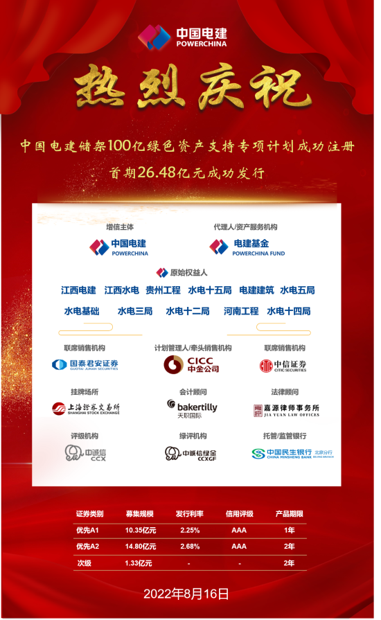 近日,“中國(guó)電建2022年第1-10期綠色資產(chǎn)支持專項(xiàng)計(jì)劃”取得上海證券交易所批復(fù),綠色儲(chǔ)架規(guī)模達(dá)100億元。本項(xiàng)目以電建股份成員單位持有的綠色應(yīng)收款項(xiàng)為基礎(chǔ)資產(chǎn),由電建股份作為增信機(jī)構(gòu),電建基金作為代理人統(tǒng)一歸集基礎(chǔ)資產(chǎn)并發(fā)行綠色資產(chǎn)支持證券。一次儲(chǔ)架分次發(fā)行和基金公司代理人模式為電建成員單位提供了壓降“兩金”、降低資產(chǎn)負(fù)債率的便捷高效新渠道。
