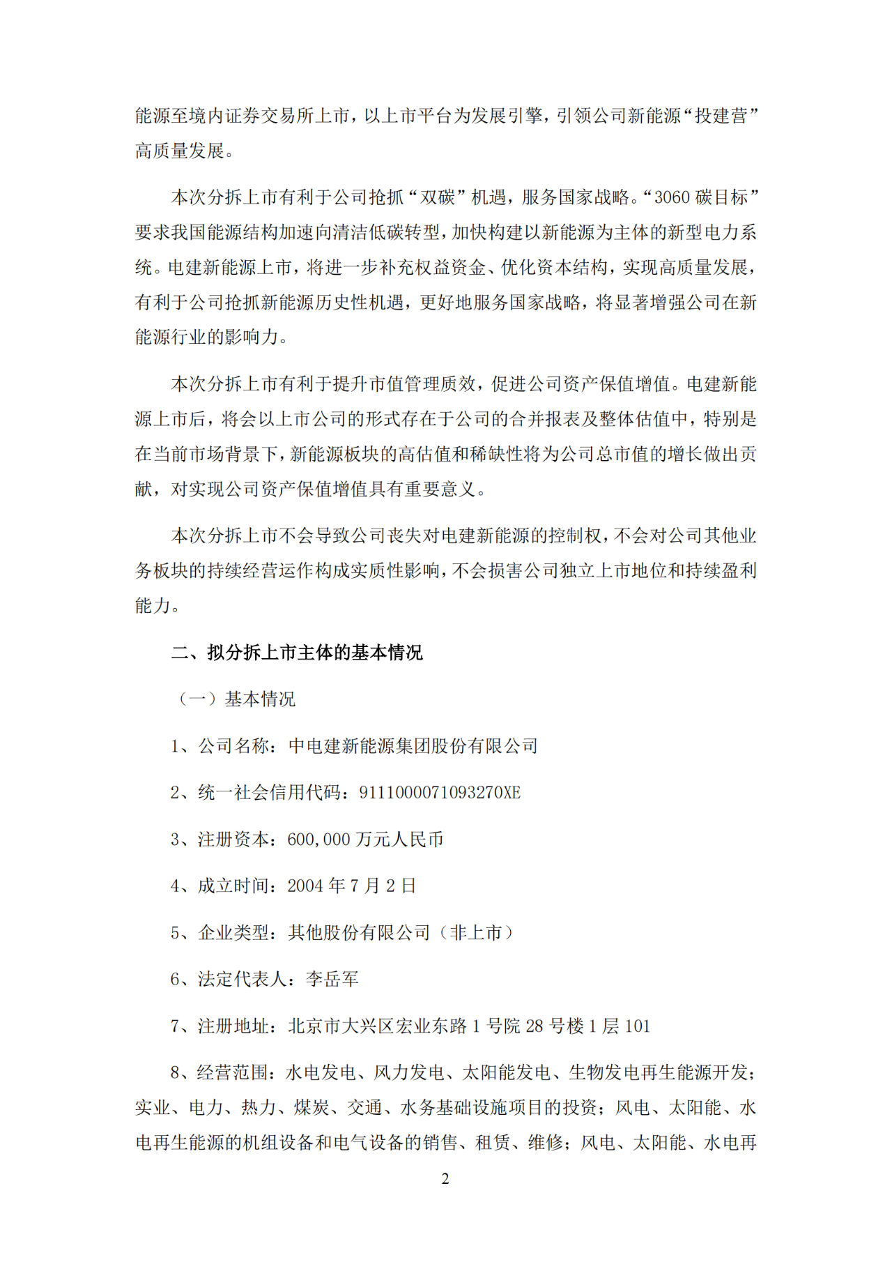 本次分拆上市有利于提升市值管理質(zhì)效,促進(jìn)公司資產(chǎn)保值增值。電建新能源上市后,將會以上市公司的形式存在于公司的合并報(bào)表及整體估值中,特別是在當(dāng)前市場背景下,新能源板塊的高估值和稀缺性將為公司總市值的增長做出貢獻(xiàn),對實(shí)現(xiàn)公司資產(chǎn)保值增值具有重要意義。本次分拆上市不會導(dǎo)致公司喪失對電建新能源的控制權(quán),不會對公司其他業(yè)務(wù)板塊的持續(xù)經(jīng)營運(yùn)作構(gòu)成實(shí)質(zhì)性影響,不會損害公司獨(dú)立上市地位和持續(xù)盈利能力。