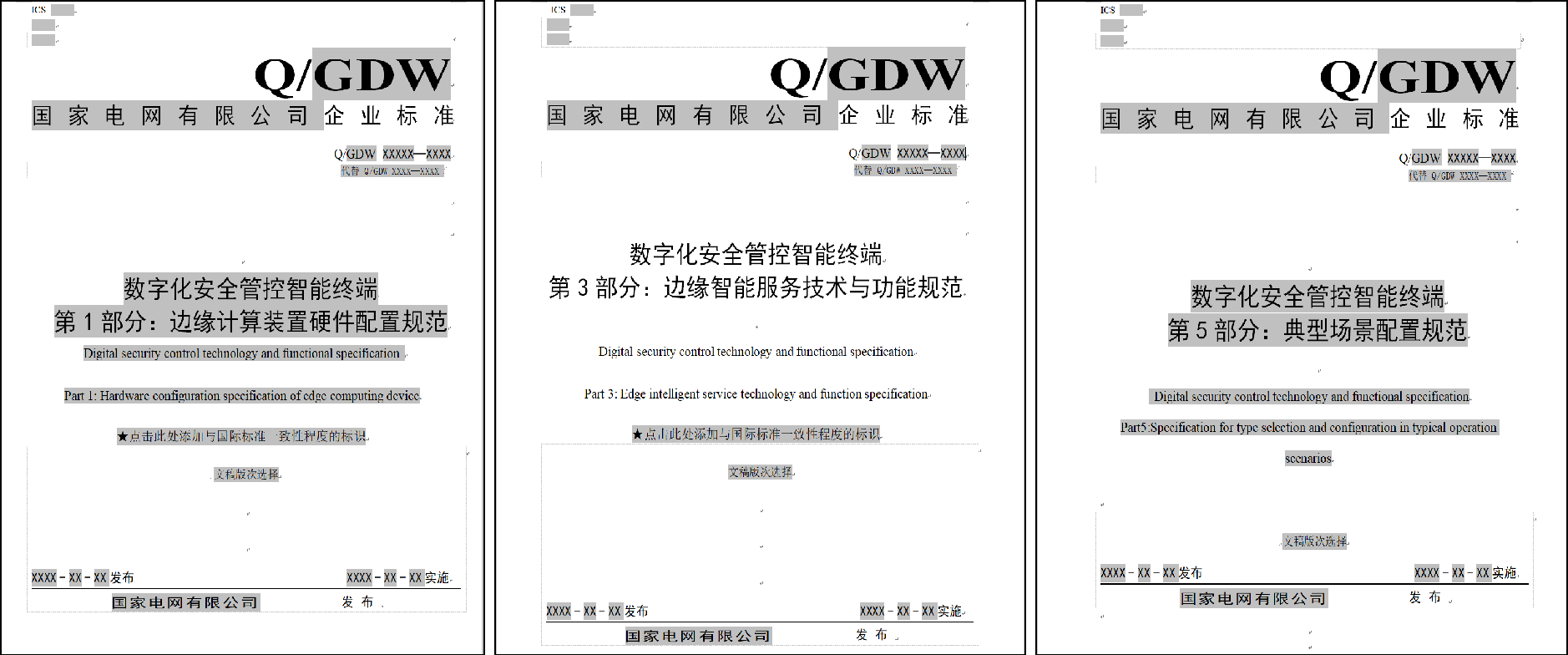 標(biāo)準(zhǔn)規(guī)范是數(shù)字化安全管控智能終端統(tǒng)一開(kāi)放,體系化應(yīng)用的重要基礎(chǔ)保障。在數(shù)字化安全管控智能終端建設(shè)過(guò)程中,國(guó)網(wǎng)信通產(chǎn)業(yè)集團(tuán)同步總結(jié),已編制修訂《邊緣計(jì)算裝置硬件配置規(guī)范》、《邊緣智能服務(wù)技術(shù)與功能規(guī)范》、《典型場(chǎng)景配置規(guī)范》等標(biāo)準(zhǔn)規(guī)范,進(jìn)一步規(guī)范數(shù)字化安全管控體系支撐,促進(jìn)安全管控向數(shù)字化、智能化轉(zhuǎn)型升級(jí)應(yīng)用。