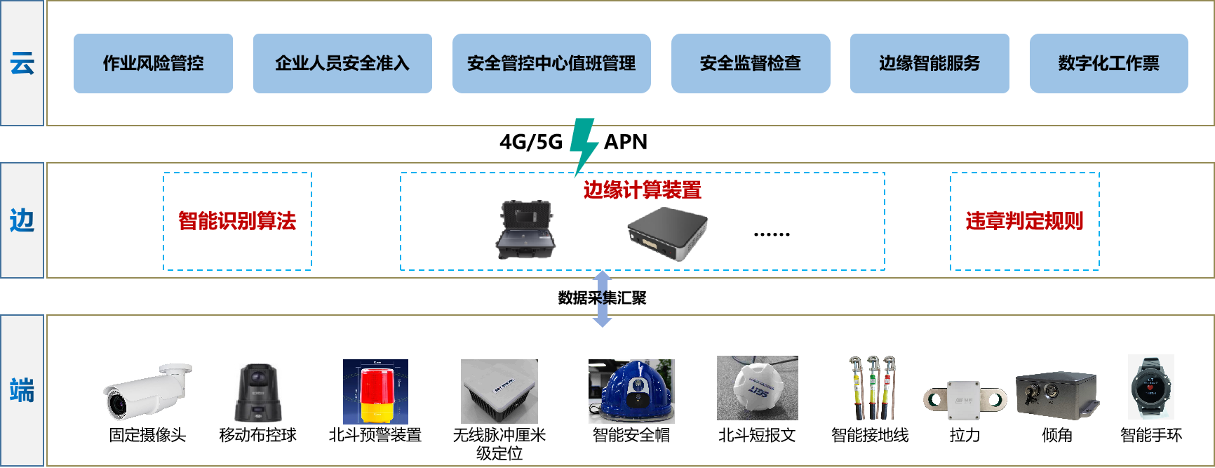 “智能終端”是現(xiàn)場(chǎng)數(shù)字化安全管控的感知末梢,主要支持WIFI、LORA等通信模式,整合了“電力北斗厘米級(jí)定位終端、北斗短報(bào)文、北斗預(yù)警裝置、智能安全帽、無(wú)線脈沖厘米級(jí)定位(UWB)終端、智能安全繩、智能接地線、氣體檢測(cè)儀、拉力傳感器”等10余種智能終端,可實(shí)現(xiàn)電子圍欄自動(dòng)部署、安措語(yǔ)音個(gè)性播報(bào)、定位與視頻聯(lián)動(dòng)等功能,并可與違章管控點(diǎn)融合,滿(mǎn)足與業(yè)務(wù)判定、作業(yè)內(nèi)容,安全措施、工作狀態(tài)的有效匹配、校核聯(lián)動(dòng),準(zhǔn)確對(duì)作業(yè)風(fēng)險(xiǎn)及時(shí)提醒、違章行為自動(dòng)告警,實(shí)現(xiàn)作業(yè)現(xiàn)場(chǎng)智能化、數(shù)字化安全管控。
