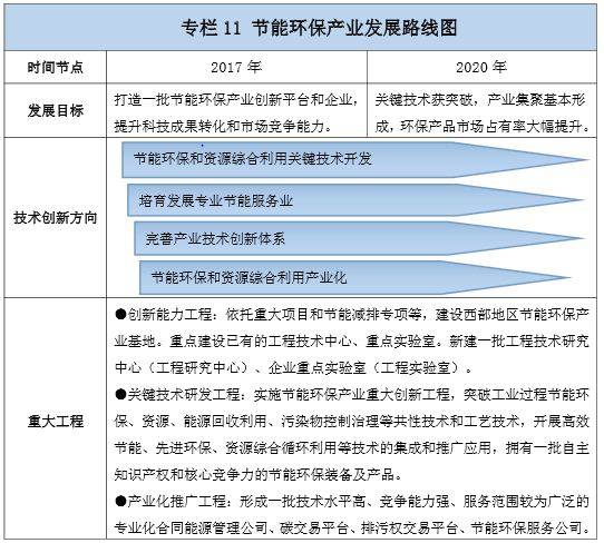 《貴州省“十三五”新興產(chǎn)業(yè)發(fā)展規(guī)劃》提出,著力突破鋼鐵冶金、有色金屬冶金、磷化工、煤化工、火電等原材料產(chǎn)業(yè)能耗高、污染大,以及固廢資源綜合利用附加值低等技術(shù)難題,開發(fā)節(jié)能環(huán)保產(chǎn)業(yè)鏈中的關(guān)鍵共性技術(shù),形成一批擁有自主核心技術(shù)的節(jié)能環(huán)保骨干企業(yè)和一批比較優(yōu)勢(shì)明顯、產(chǎn)業(yè)配套完善、有序集聚發(fā)展的先進(jìn)節(jié)能環(huán)保產(chǎn)業(yè)基地;在資源綜合利用方面,大力發(fā)展源頭減量、資源化、零排放和產(chǎn)業(yè)鏈接等新技術(shù),推進(jìn)產(chǎn)業(yè)化,提高資源產(chǎn)出率。著力發(fā)展再制造產(chǎn)業(yè),實(shí)施高端再制造、智能再制造、在役再制造,推進(jìn)再生產(chǎn)產(chǎn)品認(rèn)定,促進(jìn)再制造業(yè)持續(xù)健康發(fā)展,到2020年,節(jié)能環(huán)保產(chǎn)業(yè)總產(chǎn)值達(dá)到140億元。重點(diǎn)發(fā)展先進(jìn)環(huán)保產(chǎn)業(yè)。