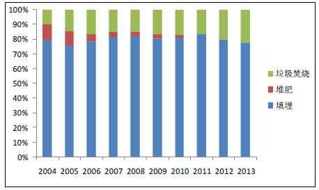 垃圾焚燒可以快速處理堆積成山的垃圾,有效減小垃圾的體積50%-90%,同時(shí)通過(guò)焚燒發(fā)電, 既解決了垃圾填埋的占地、污染問(wèn)題,又實(shí)現(xiàn)了能源的清潔回收利用。目前,我國(guó)城市生活垃圾累積堆存量已達(dá)70 億噸,據(jù)國(guó)家統(tǒng)計(jì)局?jǐn)?shù)據(jù)顯示,截止2013 年我國(guó)生活垃圾填埋比例占68.2%, 垃圾焚燒僅占30.1%。