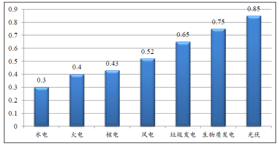 各種發(fā)電方式上網(wǎng)電價(jià)(元/kwh)