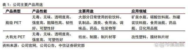 國內(nèi)瓶級PET龍頭,成立于2008年,主營聚酯材料的研發(fā)、生產(chǎn)和銷售等業(yè)務(wù),主要產(chǎn)品有瓶級PET、大有光PET、光伏背板基材PET和其他PET等,可廣泛應(yīng)用于礦泉水瓶、碳酸飲料瓶、熱罐裝飲料瓶、藥品瓶、日化用品瓶、食用油瓶、改性塑料、膜材和片材等眾多領(lǐng)域。