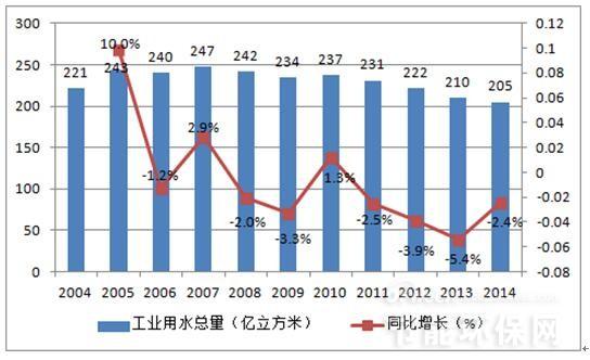 2004-2014年我國(guó)工業(yè)廢水排放量變化