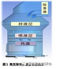 含塵煙氣通過托盤慣性力作用捕集大顆粒的粉塵(),在噴淋區(qū)煙氣與小液滴逆流接觸,慣性碰撞、攔截、擴散、凝聚等作用捕集一部分粉塵,通過持液層鼓泡洗滌煙塵和霧滴,去除細(xì)顆粒粉塵、經(jīng)過水平煙道一套三級高性能煙道除霧器撞擊分離,捕集剩余的石膏液滴和細(xì)微粉塵,實現(xiàn)排放粉塵含量小于5mg/m3。