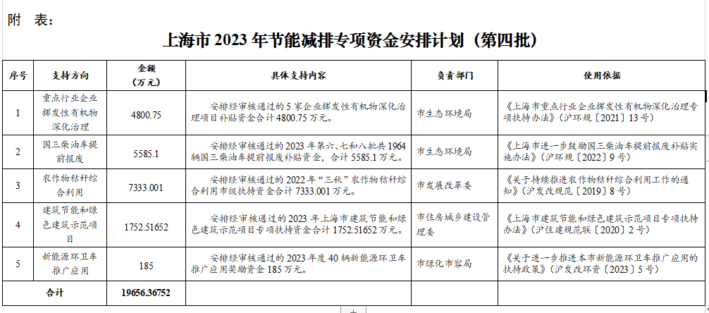 11月8日,上海市發(fā)改委下達(dá)2023年第四批節(jié)能減排專項(xiàng)資金安排計(jì)劃,共5項(xiàng),合計(jì)19656.36752萬元。其中,安排經(jīng)審核通過2023年上海市建筑節(jié)能和綠色建筑示范項(xiàng)目專項(xiàng)扶持資金合計(jì)1752.51652萬元。