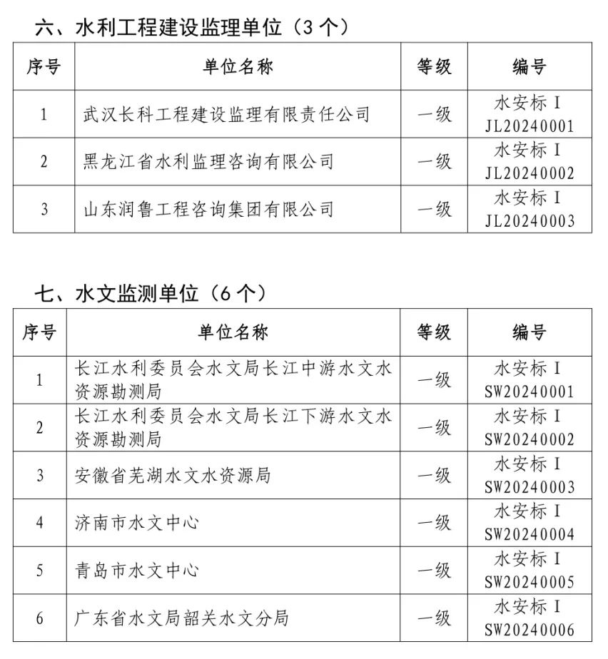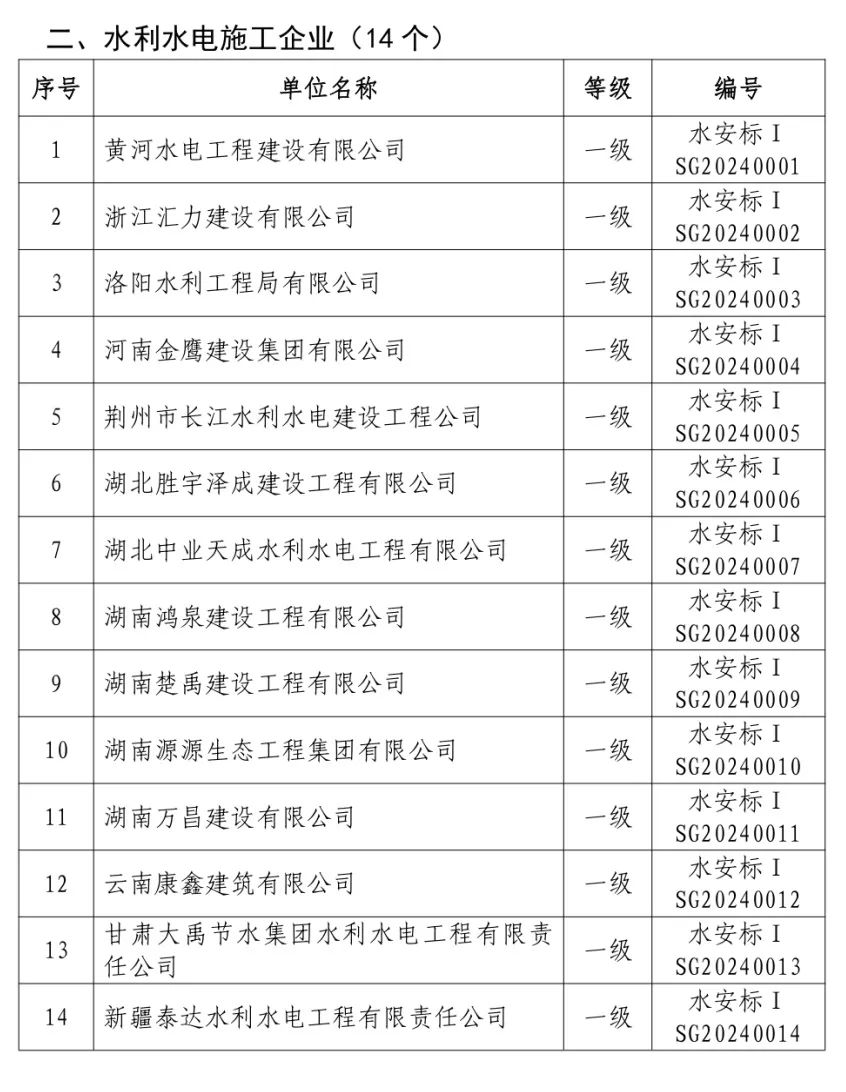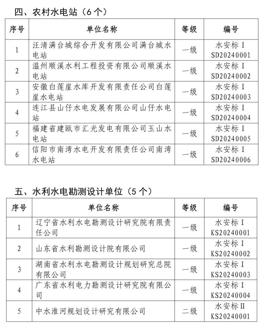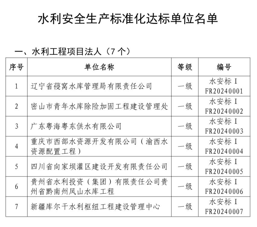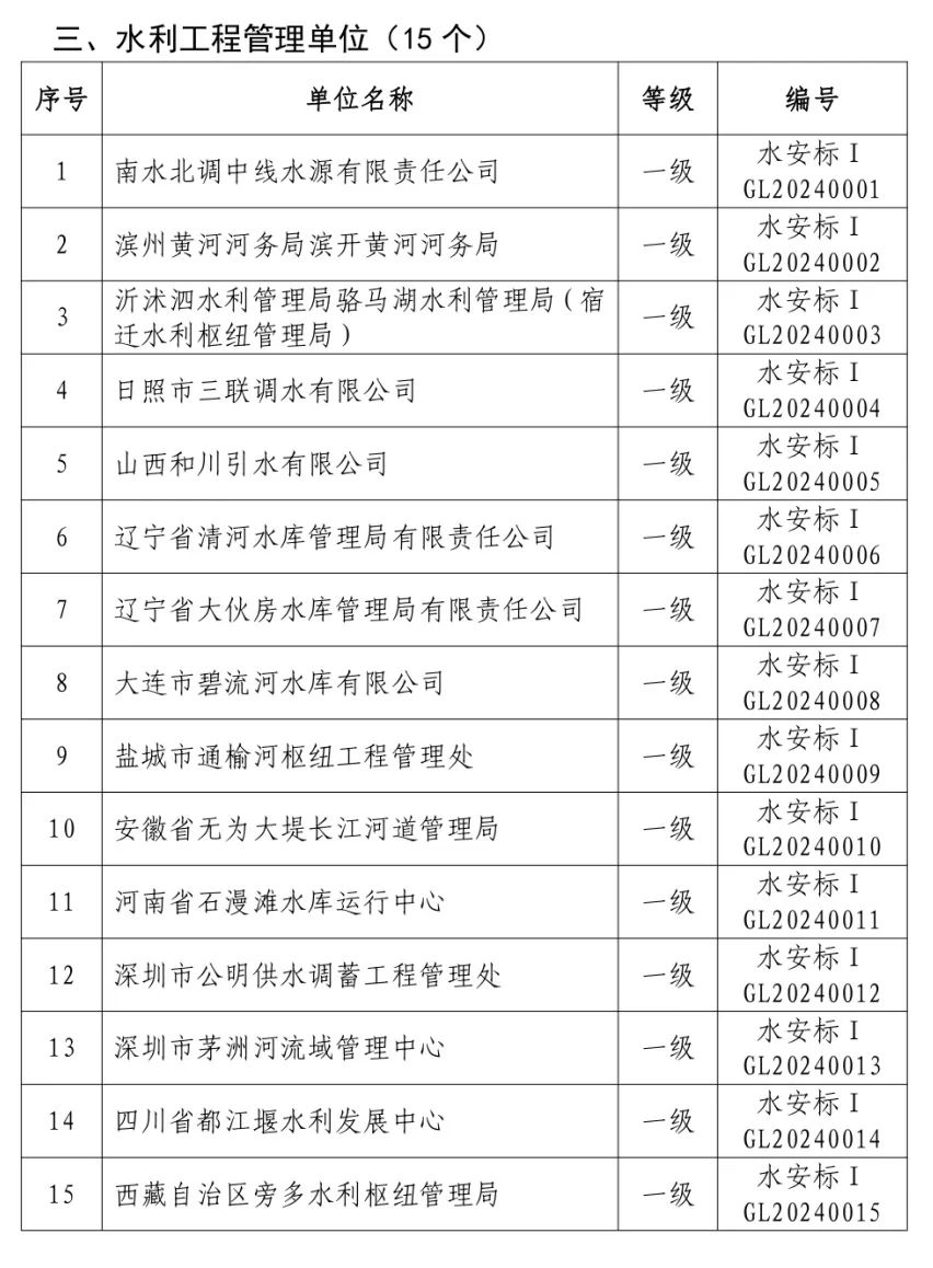 中新網(wǎng)1月22日電 據(jù)中國水利官方微信消息,根據(jù)《水利部關(guān)于印發(fā)〈水利安全生產(chǎn)標(biāo)準(zhǔn)化評審管理暫行辦法〉的通知》《水利部關(guān)于印發(fā)農(nóng)村水電站安全生產(chǎn)標(biāo)準(zhǔn)化達(dá)標(biāo)評級實(shí)施辦法(暫行)的通知》《水利部辦公廳關(guān)于印發(fā)〈水利安全生產(chǎn)標(biāo)準(zhǔn)化評審管理暫行辦法實(shí)施細(xì)則〉的通知》《水利部關(guān)于水利部安全生產(chǎn)標(biāo)準(zhǔn)化評審有關(guān)事項(xiàng)的通知》和《水利部辦公廳關(guān)于水利水電勘測設(shè)計等四類單位安全生產(chǎn)標(biāo)準(zhǔn)化有關(guān)工作的通知》,經(jīng)評審,遼寧省葠窩水庫管理局有限責(zé)任公司等57個單位為安全生產(chǎn)標(biāo)準(zhǔn)化一級單位、中水淮河規(guī)劃設(shè)計研究有限公司等2個單位為安全生產(chǎn)標(biāo)準(zhǔn)化二級單位,名單如下。