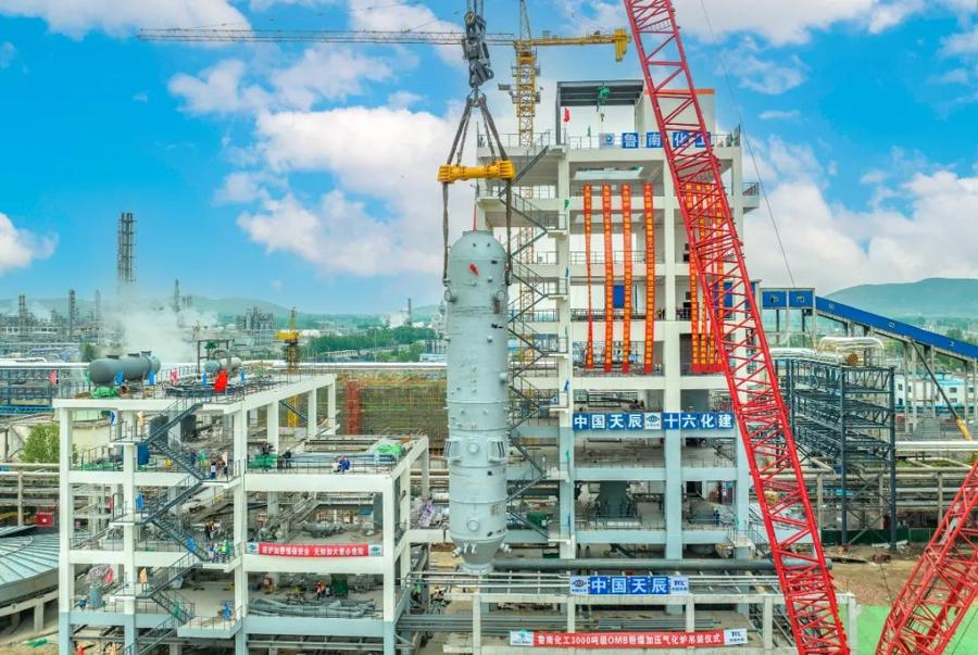▲ 多噴嘴對置式粉煤氣化爐吊裝