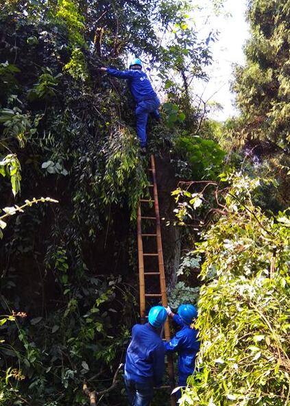 按照公司統(tǒng)一安排,松林供電所積極與高坪區(qū)老君、青蓮街道辦黨委、政府溝通協(xié)調(diào),得到了他們的大力支持和配合。從5月1日開(kāi)始,供電所每天出動(dòng)16名員工,全副武裝帶上專業(yè)排障工具,頭頂烈日,翻山越嶺、披荊斬棘地全力清排樹(shù)障。竹梯、鐮刀、彎刀、油鋸、砍刀......為了清除樹(shù)障,他們用上了各種工具。員工們臉上、手臂上、腿上,到處可見(jiàn)劃傷的痕跡,工作服濕了又干、干了又濕。