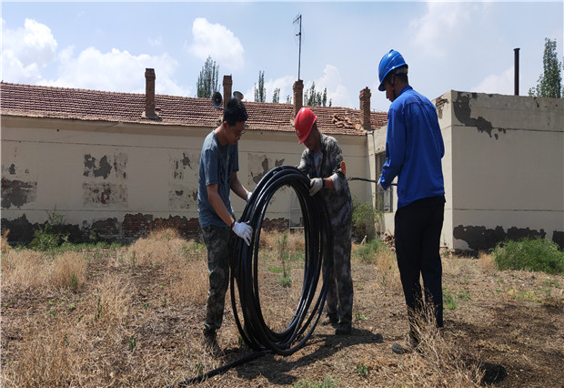 在了解情況后,烏海電業(yè)局工會扶貧辦積極與養(yǎng)殖場當?shù)氐牧逅墓╇姺志謱印7志止ぷ魅藛T立刻前往逸夫小學扶貧養(yǎng)殖基地對整個院子進行了巡視,確定了電纜敷設(shè)的方案以及配電室的接線方式。第二天正值周末,六五四分局工作人員便進場施工。9名工作人員分工合理同時開工,鋪電纜、沿墻固定、埋電纜、配電室布線接電。烈日炎炎,在這場耐力與體力的考驗中,即使汗水浸濕了大家的衣服也絲毫沒有拖慢工作的進程,工藝也沒有因此打了折扣,最后大家齊心協(xié)力共同完成了420米電纜鋪設(shè)及接火停電的工作。