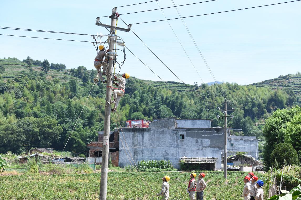 在經(jīng)過近一個半小時的高空作業(yè),作業(yè)人員順利將新增變壓器的線路連接到了10千伏村邊支線1號桿上,完成了此次帶電作業(yè)任務(wù)。下桿后的作業(yè)人員臉龐被曬得通紅,個個衣服全部濕透,接過同事遞過來的水,一口氣灌入口中。