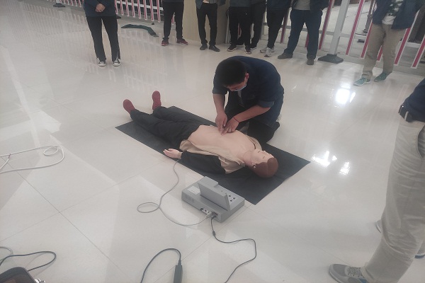 隨后,大家利用模擬人依次進行了心肺復蘇搶救實訓。實踐過程中,實訓儀器不時的發(fā)出錯誤提示音,有的胸外心臟按壓用力過猛,有的吹氣手法錯誤,氣量過小,還有的動作頻率過慢……。經(jīng)過李燾的一一指正,通過反復練習,所有人員都成功完成了心肺復蘇搶救演練。