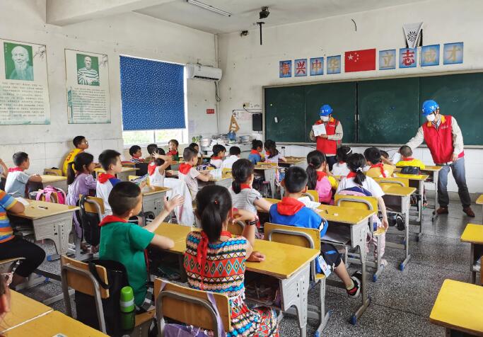 中國電力網(wǎng)訊 6月16日,國網(wǎng)射陽縣供電公司黨員服務(wù)隊(duì)走進(jìn)射陽縣海通小學(xué),對學(xué)校用電線路、設(shè)備開展隱患排查,并為孩子們上了一堂精彩有意義的電力安全課。