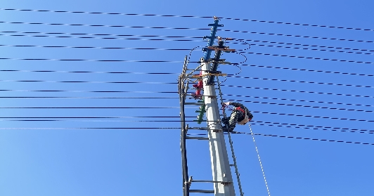 在十多米的水泥桿上,他們身系安全帶,手拿工具,時而低頭時而彎腰,努力尋找最合適的姿勢,高處作業(yè)不像平地那么自如,原本用十分的力氣便能做到的事情,在那狹小的安全距離周圍,又有多條線路的復雜作業(yè)環(huán)境下,必須使出十倍甚至百倍的力氣才能做好,當擰好最后一顆螺絲時,他們終于松了口氣,繼續(xù)下一桿基......