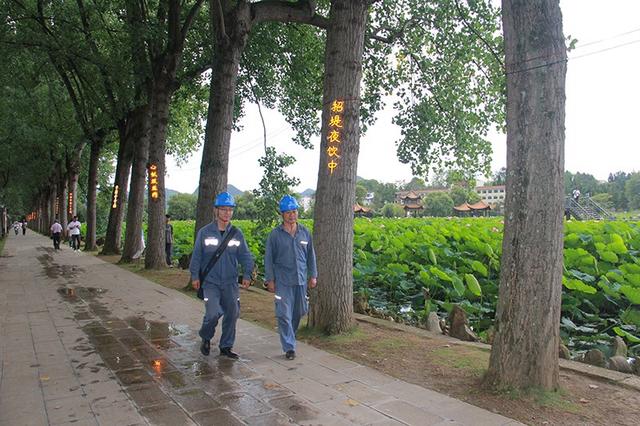 有了穩(wěn)定電力的注入,安龍供電局加強(qiáng)應(yīng)急值班,從8個(gè)供電所抽調(diào)工作人員,從統(tǒng)一調(diào)配,固定到點(diǎn),現(xiàn)場值守。多舉并措對新建臺區(qū)開展線路特巡和隱患整改,并對景區(qū)內(nèi)酒店、餐飲、夜市等場所進(jìn)行用電檢查,電力“藍(lán)”持續(xù)照亮荷花塘。
