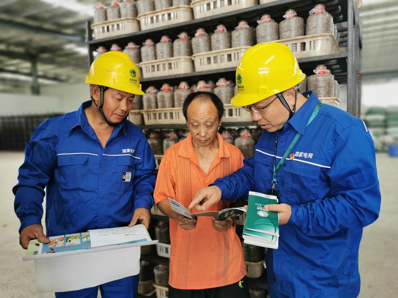 “車間里的電源線路要保持干燥,隨時關(guān)好電源箱門,避免轉(zhuǎn)運菌菇時碰觸到電源。”5月20日,四川蓬溪縣供電公司城郊供電所黨支部黨員向陽、楊中立早早來到四川琪瑛菌業(yè)股份有限責(zé)任公司(以下簡稱“琪瑛菌業(yè)”)菌菇加工車間,幫助檢查車間電源線路及設(shè)備隱患,向車間負(fù)責(zé)人了解用電情況,為工人們宣講安全用電常識。