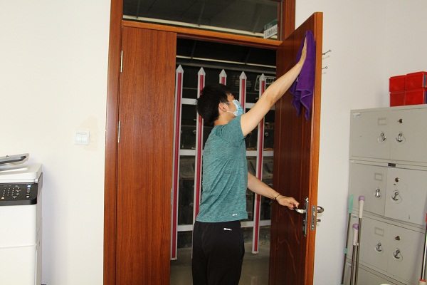 中國電力網(wǎng)訊 “大家把門和柜子上面都擦一擦、消消毒,讓病毒無處可藏”,5月19日,新疆生產(chǎn)建設(shè)兵團(tuán)第一師電力有限責(zé)任公司中心調(diào)度所開展衛(wèi)生大掃除活動(dòng),確保疫情防控?zé)o死角。