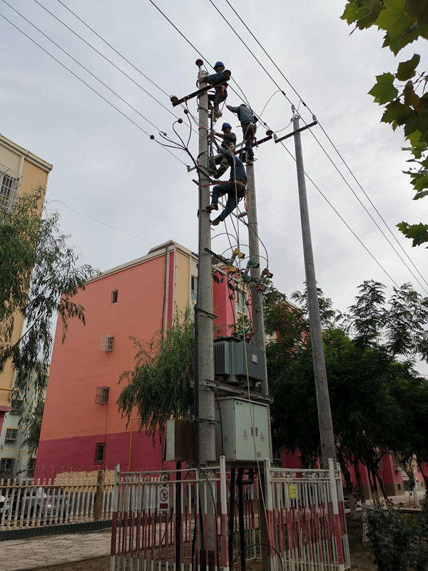 10KV配網(wǎng)線路老化,連隊(duì)危房改造房屋拆除后,進(jìn)戶線凌亂,對地安全距離不夠,電線桿根堿化嚴(yán)重。存在安全隱患。本次升級改造更換為相應(yīng)電壓等級的絕緣導(dǎo)線,15m電線桿設(shè)計(jì),絕緣子全部換新,將現(xiàn)有單回路改造為雙回路。屬地現(xiàn)場負(fù)責(zé)人運(yùn)檢隊(duì)長劉朋舉和運(yùn)檢隊(duì)全隊(duì)人員分片跟施工隊(duì)進(jìn)現(xiàn)場,及時(shí)檢查、督促,對進(jìn)度實(shí)時(shí)糾偏,隨時(shí)解決問題和提出改進(jìn)意見。緊抓施工質(zhì)量和進(jìn)度、安全。施工停電前一天通知用戶,重要用戶提前兩天通知到位。所安全員王勝利負(fù)責(zé)施工現(xiàn)場安全監(jiān)督,對施工人員持證上崗、安全防護(hù)用具、安全措施等開展現(xiàn)場監(jiān)督。與團(tuán)農(nóng)發(fā)辦、施工隊(duì)積極開展對接工作,發(fā)揮屬地管理作用。