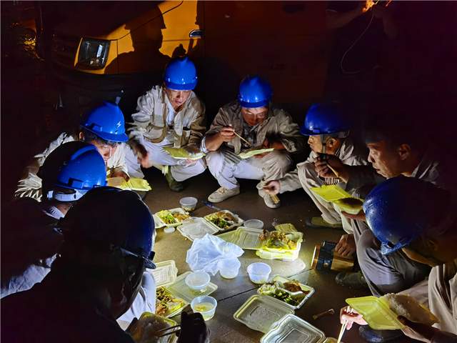 重新樹立桑周村11組的低壓電桿時更是困難重重。由于地理環(huán)境限制,無法使用吊車立桿,12名搶修隊員在時歇時猛的雨水中手拉肩扛,苦苦奮戰(zhàn),臉上、身上沾滿了泥水。附近的群眾見狀,也紛紛趕來幫忙。晚飯時刻,大家圍蹲在一起,吃了一頓難忘的盒飯。經(jīng)過大家近5個小時的努力,終于恢復了該條線路的供電。(楊海霞)